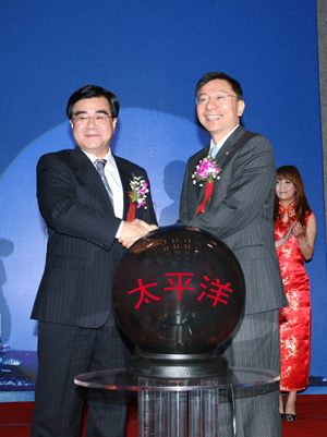 中國(guó)保監(jiān)會(huì)副主席周延禮(左)、中國(guó)太平洋保險(xiǎn)集團(tuán)董事長(zhǎng)高國(guó)富為中國(guó)太平洋保險(xiǎn)航運(yùn)保險(xiǎn)事業(yè)總部的成立揭牌。 2009年12月3日,由上海金融服務(wù)辦、上海保監(jiān)局、復(fù)旦大學(xué)、中國(guó)太平洋保險(xiǎn)共同舉辦的航運(yùn)保險(xiǎn)(上海)國(guó)際研討會(huì)在上海西郊賓館召開。來(lái)自中國(guó)保監(jiān)會(huì)、上海市政府、上海金融辦、上海保監(jiān)局、上海市發(fā)改委、上海市建交委、上海市國(guó)稅、地稅局、上海市保險(xiǎn)行業(yè)協(xié)會(huì)、中國(guó)海事仲裁委員會(huì)上海分會(huì)、中國(guó)船級(jí)社上海分社、交通運(yùn)輸部、同業(yè)保險(xiǎn)公司、國(guó)際再保險(xiǎn)公司、銀行、公估行、律師、經(jīng)紀(jì)人、航運(yùn)機(jī)構(gòu)、高校、學(xué)術(shù)機(jī)構(gòu)及太平洋保險(xiǎn)等單位150余人參加了會(huì)議。