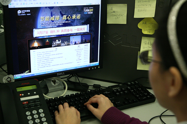 3月中旬,太平洋保險發(fā)出了踐行“做一家負責任的保險公司”使命,讓地球休“熄”一小時的倡議,號召全司員工和客戶參與到地球一小時活動中,并統(tǒng)一制作海報,在分支機構在營業(yè)場所張貼。3月22日,太平洋保險又開通了“低碳節(jié)能、真心承諾”的電子承諾墻,請大家用最環(huán)保的形式,留下低碳環(huán)保生活的承諾。廣大員工積極響應倡議,在留言墻上留下真心承諾,如“節(jié)能減排從生活的點點滴滴著手”、“地球是我們共同的家園,讓我們攜手共建美好家園”,短短2天,已經(jīng)有幾千人留言。