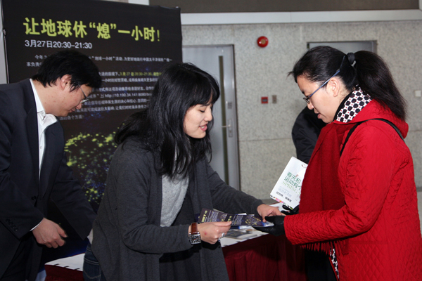2010年3月26日,“地球一小時(shí)”活動(dòng)的前一天,太平洋保險(xiǎn)在上??偛哭k公職場發(fā)放倡議書和環(huán)保蠟燭,呼吁大家共同參與環(huán)?;顒?dòng),前來領(lǐng)取蠟燭和倡議書的員工絡(luò)繹不絕,大家都表達(dá)了要以實(shí)際行動(dòng)實(shí)現(xiàn)節(jié)約一度電,節(jié)約一滴水,節(jié)約一張紙,綠色出行等的低碳生活理念。