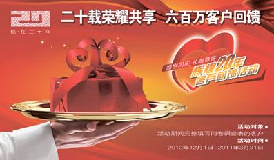 日前,太平洋壽險營銷渠道為迎接司慶20周年,提前部署2011年“開門紅”業(yè)務(wù)競賽活動,推出“太保輝煌20年”系列活動。作為首項活動,全司范圍的“太保輝煌20年?客戶回饋”活動即將在今年12月拉開帷幕。