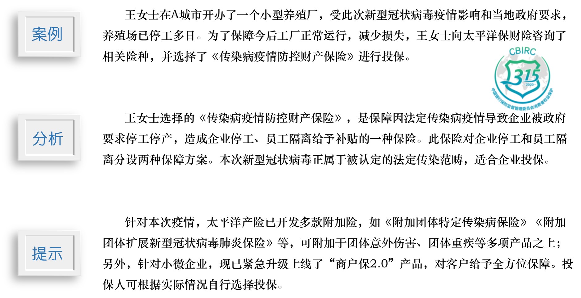3·15|以案說險(xiǎn):(企業(yè)客戶)疫情期間如何挑選適合自己的產(chǎn)品