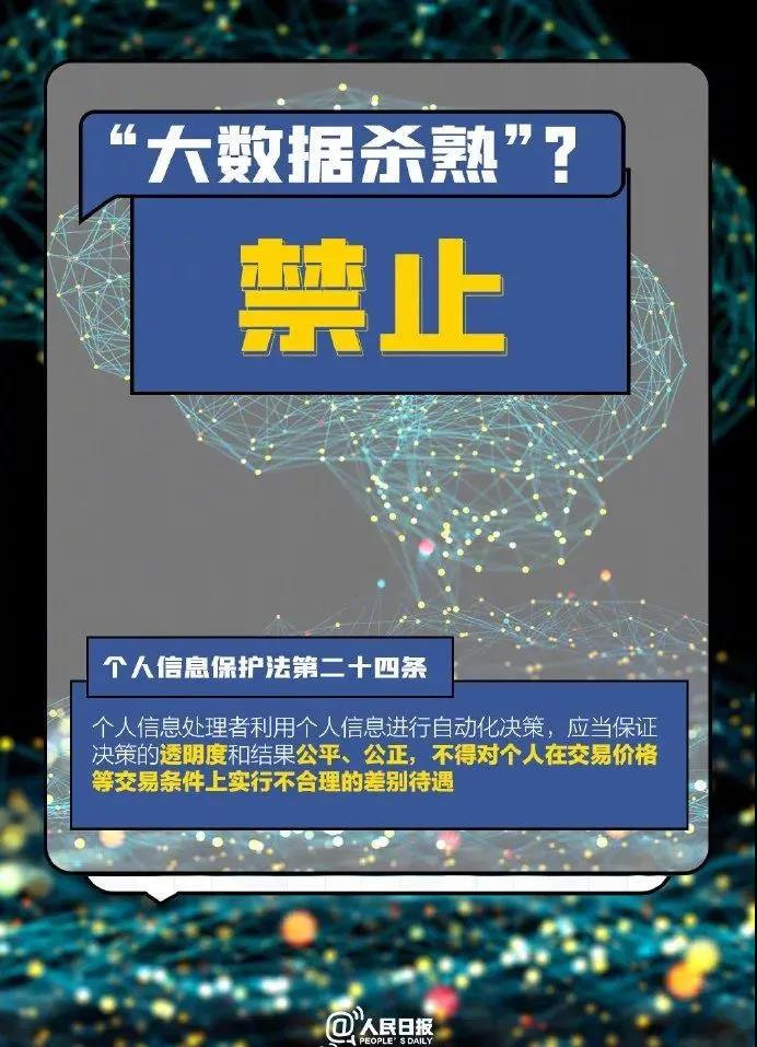 嚴(yán)禁“大數(shù)據(jù)殺熟”,APP不得強(qiáng)制推送個(gè)性化廣告,不得非法收集、使用、加工、傳輸他人個(gè)人信息,不得因用戶不同意提供信息拒絕服務(wù)……《個(gè)人信息保護(hù)法》今起實(shí)施,為信息保護(hù)加上一把法律“安全鎖”,看圖了解一下——