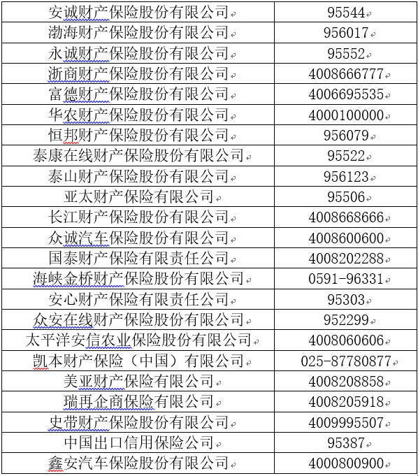 各財(cái)產(chǎn)保險(xiǎn)公司客戶服務(wù)電話