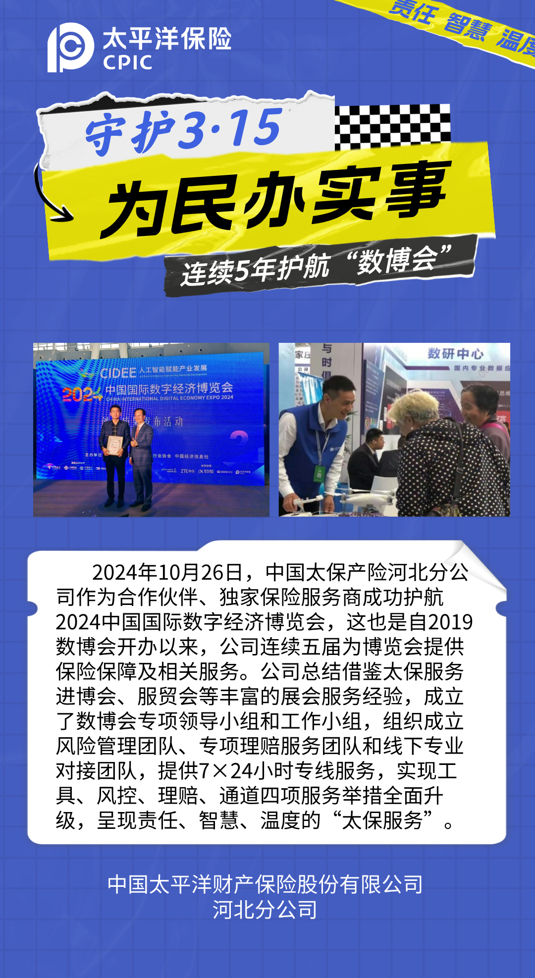 中國太保產(chǎn)險(xiǎn)河北分公司為民辦實(shí)事之連續(xù)5年護(hù)航“數(shù)博會(huì)”