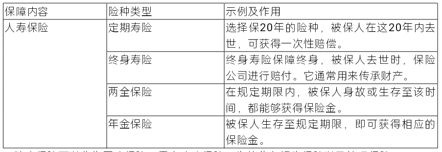 1.人壽保險具體包括定期壽險、終身壽險、兩全保險以及年金保險。